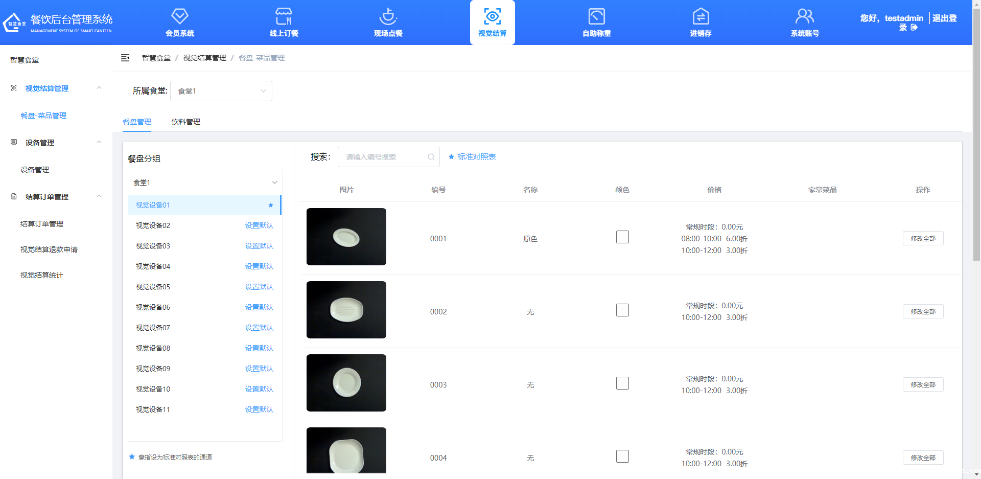 ①点击“修改全部”按钮可对餐盘的名称、价格、时段价格、常用菜品进行编辑。