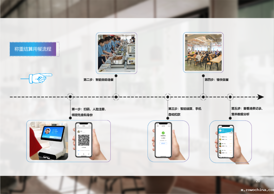 就餐者可以使用微信扫描智能秤上的二维码即可绑定托盘,以轻松实现自助就餐。就餐者还可以查看消费账单、营养报告、交易记录等功能操作;人脸绑定,无需排队;自助售卖,改善用餐体验,吃多吃少我做主,提升用餐满意度;餐后查收膳食报告,均衡营养摄入。