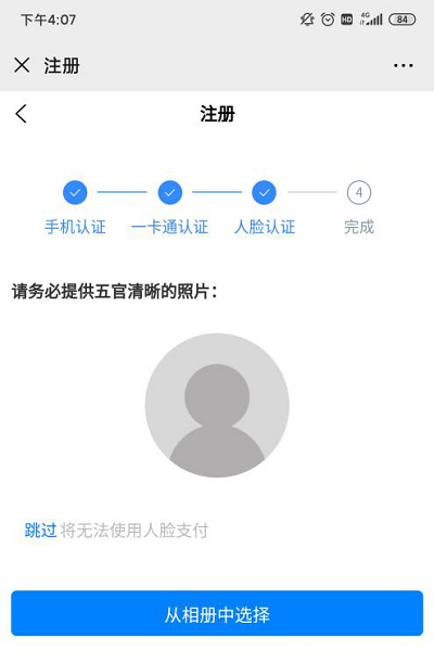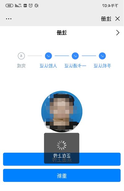 ③点击“上传”按钮,人脸将绑定一卡通账号,点击“重新”则重选照片